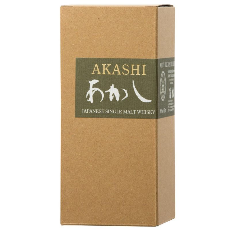 Akashi Single Malt es conocido por ser el whisky oficial de la destilería Eigashima. Este excepcional single malt se produce en cantidades limitadas, elaborado exclusivamente con cebada malteada escocesa y envejecido durante 3 años en barriles de bourbon. Akashi Single malt tiene notas yodadas provenientes directamente de la bahía de Osaka. Ni frío filtrado ni coloreado. Ganó la medalla de bronce en el Tokyo World Spirit Competition 2021