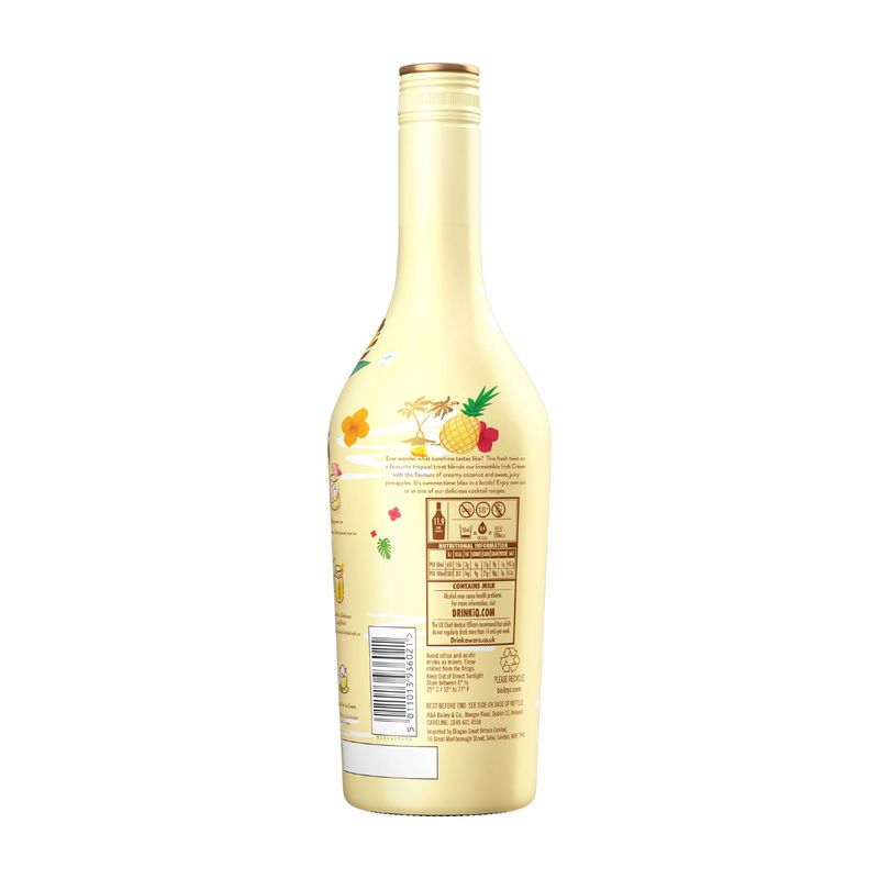 Nuestra nueva edición limitada Baileys Colada combina nuestro irresistible Original Irish Cream con los sabores del coco y la dulce piña para crear una bebida suave y cremosa. Simplemente disfrute de una medida de 50 ml sobre hielo, o para un capricho extra, rocíe 50 ml de Baileys Colada sobre helado de vainilla. Mejor aún, prepare un cóctel de Baileys Colada mezclando 50 ml de Baileys Colada con un puñado de piña y hielo: ¡delicioso! Este sabor por tiempo limitado es perfecto para disfrutar en casa, llueva o haga sol... Baileys ¡Colada es como el verano en una botella! Disponible hasta fin de existencias.
