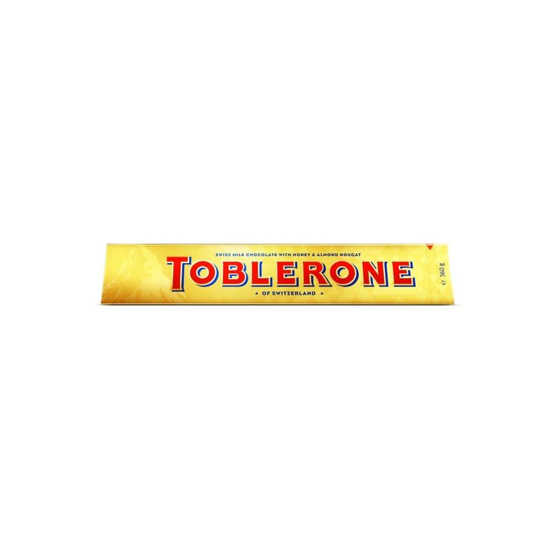 El icónico chocolate triangular de Suiza, con miel y turrón de almendras. Este paquete dorado exclusivo para viajes contiene 360 g de chocolate con leche TOBLERONE: ¡un regalo perfecto y un clásico atemporal que nunca deja de deleitar! Fabricado en Suiza.