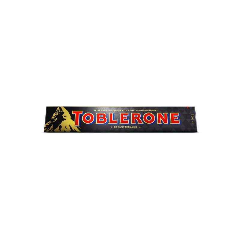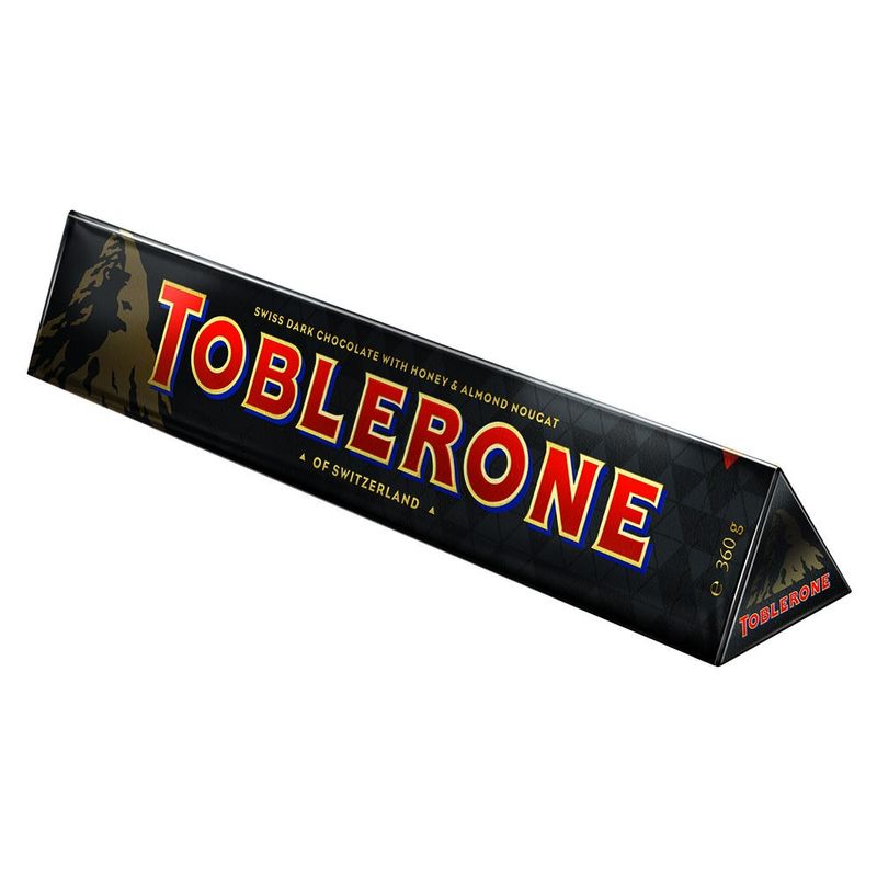 Disfrute de TOBLERONE Dark, el icónico chocolate triangular de Suiza con miel y turrón de almendras. Este paquete exclusivo para viajes contiene 360 g de TOBLERONE Dark Chocolate: ¡un regalo perfectamente decadente! Fabricado en Suiza.