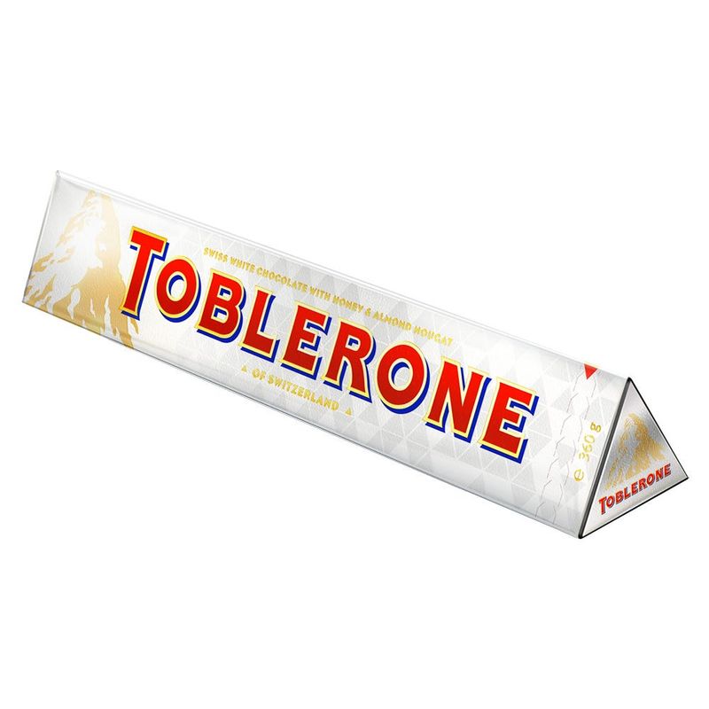 Disfrute de TOBLERONE White, el icónico chocolate triangular de Suiza con miel y turrón de almendras. Este paquete exclusivo para viajes contiene 360 g de TOBLERONE Chocolate Blanco: ¡un regalo perfecto, tan puro y blanco como los Alpes suizos! Fabricado en Suiza.
