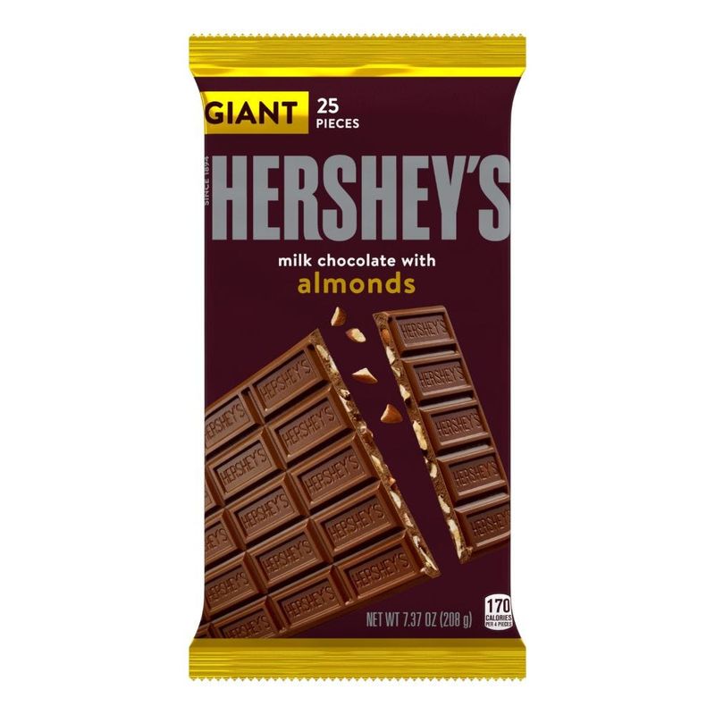 A los amantes del chocolate les encantará esta colosal chocolatina, elaborada con el cremoso chocolate con leche Hershey's y almendras. Hershey's La Barrita Gigante de Chocolate con Leche y Almendras es perfecta como regalo, ¡especialmente si usted es el destinatario! Perfecta para regalar, rellenar calcetines y picar entre horas. Una chocolatina kosher