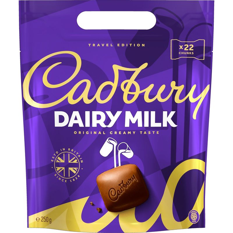Deliciosas miniaturas de Leche Láctea Cadbury en un formato de bolsa exclusivo para viajes. Perfectas para compartir con amigos y familiares. Contiene 26 miniaturas envueltas individualmente.