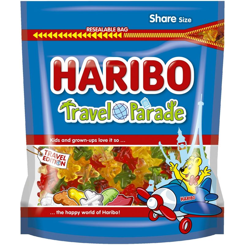 Nuestro icónico desfile aéreo se ha transformado en el nuevo Travel Parade con más formas de caramelo. Así que, ¡vámonos de viaje con Travel Parade! Travel Parade es una deliciosa mezcla de 6 caramelos de gelatina diferentes caramelos de gelatina. Descubre el tren, el coche, el barco, la moto, la autocaravana... sin olvidar el querido avión. Con deliciosos sabores afrutados sabores afrutados, todos los amantes de los viajes para alegrar su viaje
