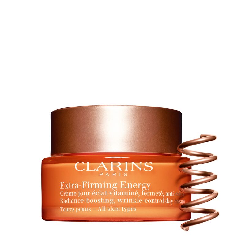 Es la crema de día que lo tiene todo para las mujeres de 40 años superactivas y a menudo agobiadas. Este tratamiento 2 en 1 combina la experiencia en firmeza de CLARINS con el efecto potenciador de una crema iluminadora. Cuando la piel está sometida a un estilo de vida acelerado, se vuelve apagada, fatigada y aparecen las arrugas... Extra-Firming Energy es la respuesta, ya que ayuda a restaurar la firmeza de la piel y crea un cutis revitalizado y radiante Y, por supuesto, cada aplicación aporta una dosis de bienestar y una experiencia sensorial, gracias a su textura untuosa y a su perfume fresco y energizante. Por fin, un tratamiento que devuelve la vitalidad a su piel y a sus pasos Una piel firme y resplandeciente