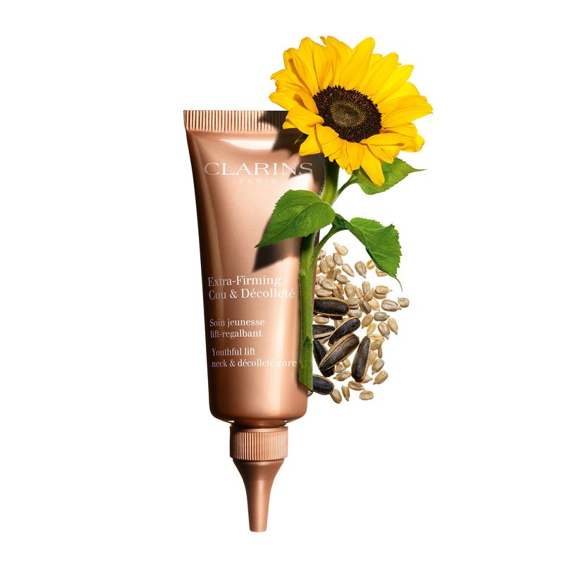 Una crema reafirmante de cuello ligera y no grasa que contiene potentes extractos de algas verdes y auxinas de girasol, combinados con el Complejo Extra-Reafirmante patentado CLARINS para suavizar, alisar y reafirmar el cuello y el escote.