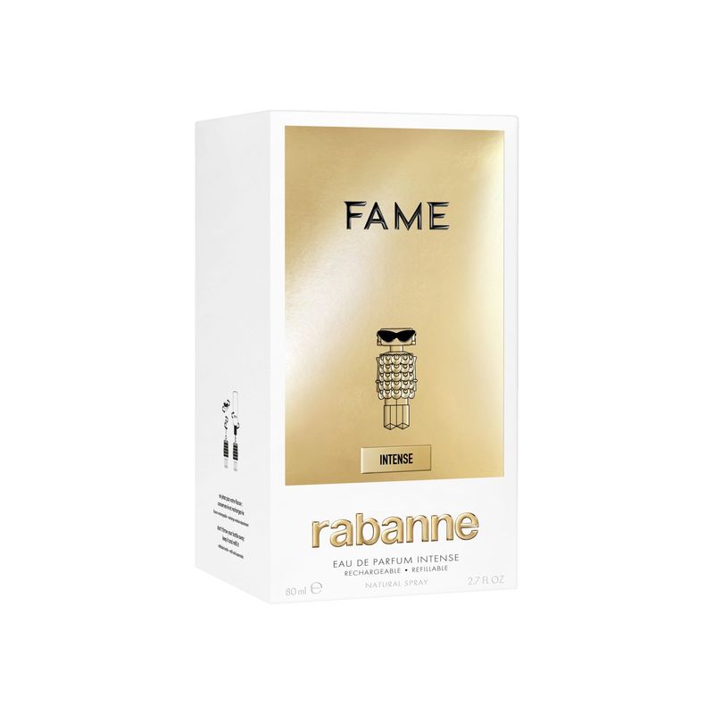 Reclama tu luz interior. Deja que el oro sea el nuevo atrevimiento. FAME Intense de Rabanne desata tu aura más atrevida. Brilla con más intensidad. Más traviesa. Más irreverente. Más galvanizada. El jazmín solar se une al opulento incienso y al cremoso sándalo en una fragancia deslumbrante que libera tus facetas más chispeantes, potenciando la estrella FAME que llevas dentro.