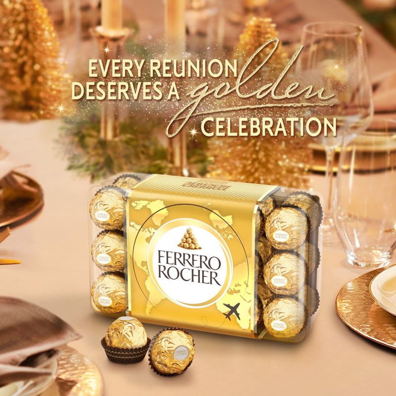 30 premium Ferrero Rocher pralines in the best selling sophisticated gifting transparent packaging.