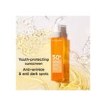 This two-phase SPF 50+ sun mist offers protection against the damaging effects of the sun and free radicals. Its satiny, invisible finish moisturises the skin and enhances your tan. Its fresh texture is as light as water, making it a real pleasure to apply! And despite its surprising lightness, it is also water-resistant for protection at all times. Its formula includes [Solar Protect Complex], which guarantees broad-spectrum protection against UVA/UVB rays and blue light thanks to its combination of sun filters. Composed of a powerful duo of organic cocoa extract and vitamin derivative, it also has an anti-wrinkle, anti-dark spot and anti-oxidant action.