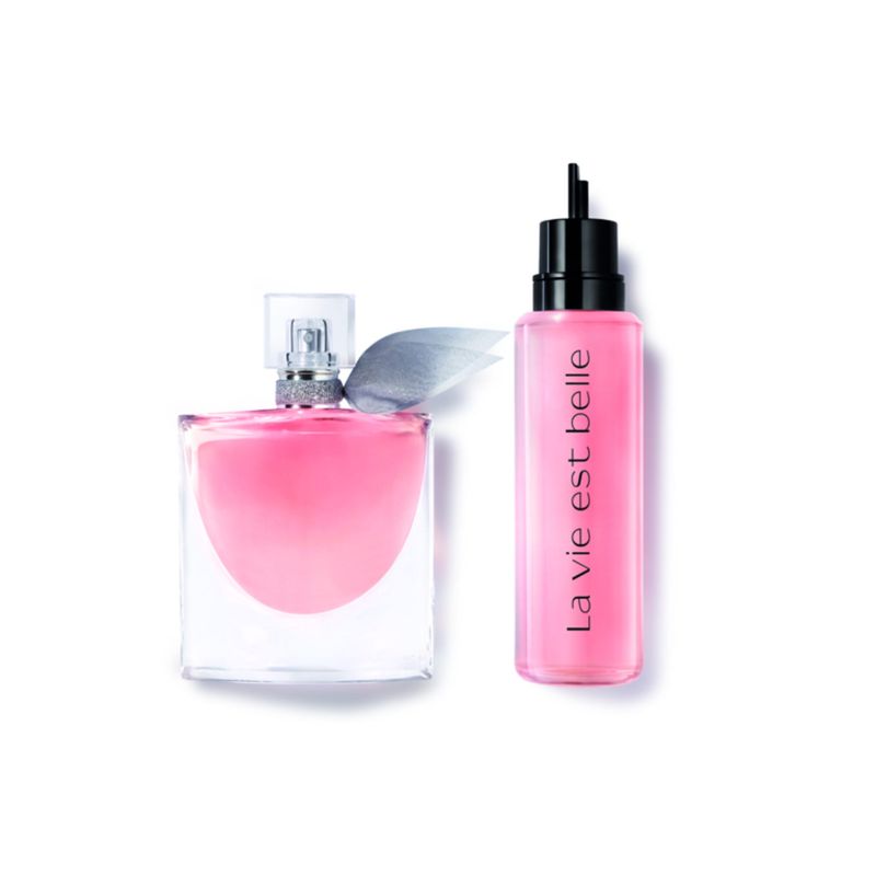 Iconic Duo Gift Set: La Vie est Belle Eau de Parfum (50ml) and its Refill (100 ml). A universal declaration of the beauty of life. La Vie est Belle symbolizes a new philosophy of life: far from constraints, every woman chooses her own path to happiness. La Vie Est Belle Eau de Parfum refill is now available and lets you replenish your precious bottle at home. With this refill, Lancôme is committed to more responsible luxury. Choosing the refill = -50% glass, -46% plastic, -46% cardboard*. *A simple gesture, for yourself and for the planet.