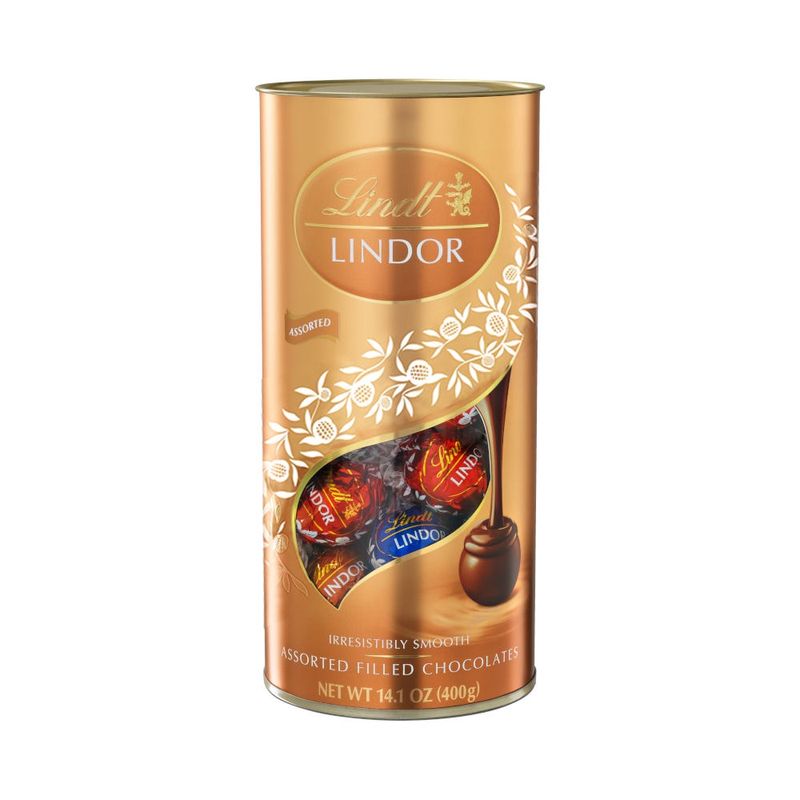 Discover LINDOR and enjoy a moment that is yours. When you break LINDOR's delicate shell, the irresistibly smooth filling starts to melt, gently caressing all your senses and taking you to a place where chocolate dreams come true. This attractive golden LINDOR tube contains an assortment of four different varieties of irresistibly smooth LINDOR Balls (milk, white, dark, hazelnut).