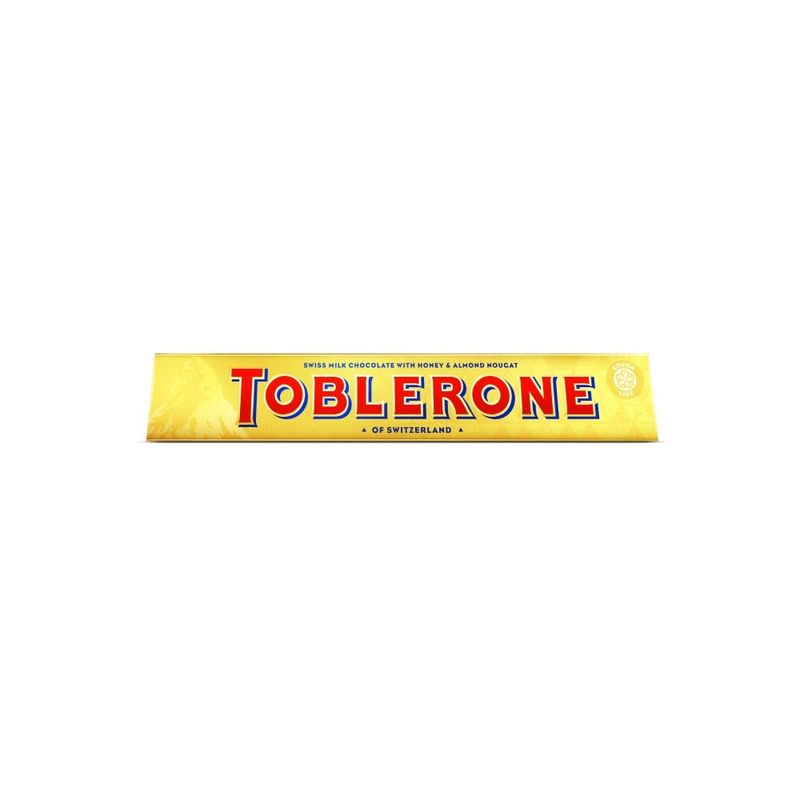 El icónico chocolate triangular de Suiza, con miel y turrón de almendras. Este envase dorado exclusivo para viajes contiene 100 g de chocolate con leche TOBLERONE, un tentempié perfecto y un clásico atemporal que nunca deja de deleitar Fabricado en Suiza.