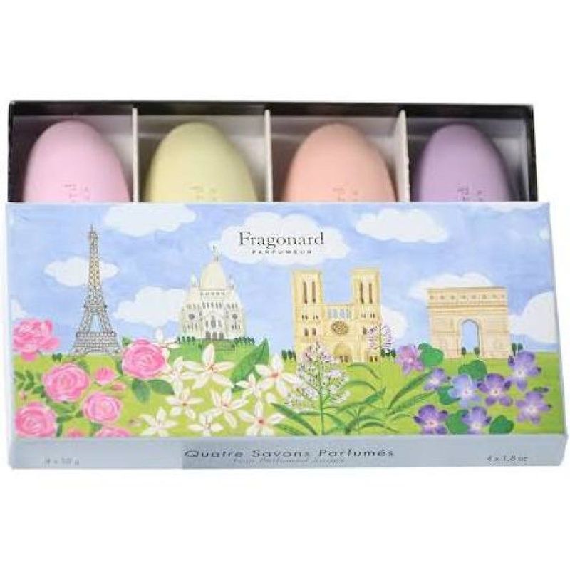 Bellamente empaquetado y listo para su presentación, el Set de Regalo de Jabón Paris Guest de Fragonard Parfumeur es una pieza elegante y fragante para hacer que cualquiera se sienta bienvenido en su casa. Un regalo perfecto para los amantes de París, estos elegantes jabones vienen en cuatro colores pastel (rosa, blanco, amarillo y morado) y capturan el fresco aroma de la primavera a través de sus esencias florales de lavanda, rosa, verbena y fresia. 4 jabones de 50 g fabricados en Francia.