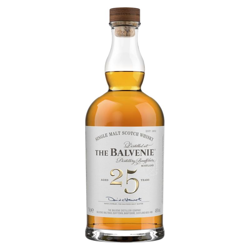 El Balvenie Twenty-Five (48%) es el más joven de la prestigiosa gama Rare Marriages, una colección de tres whiskies distintos que muestran extraordinarias capas de profundidad y complejidad. Envejecido durante 25 años, las barricas individuales se unen para crear una expresión increíblemente compleja. Saboree las suaves frutas otoñales, el jengibre y la caña de azúcar cruda que descienden hasta la atrevida vainilla, el roble y el malvavisco combinados con una apetitosa tarta de manzana con canela. Saboree el lujo de Balvenie en cada sorbo.