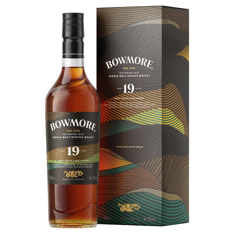 Bowmore 19-year-old Pinot Noir Cask is a delightfully smouldering and expressive Bowmore single malt whisky matured in American Oak ex-Bourbon casks and finished in French Oak Pinot Noir barriques for an elegant flourish