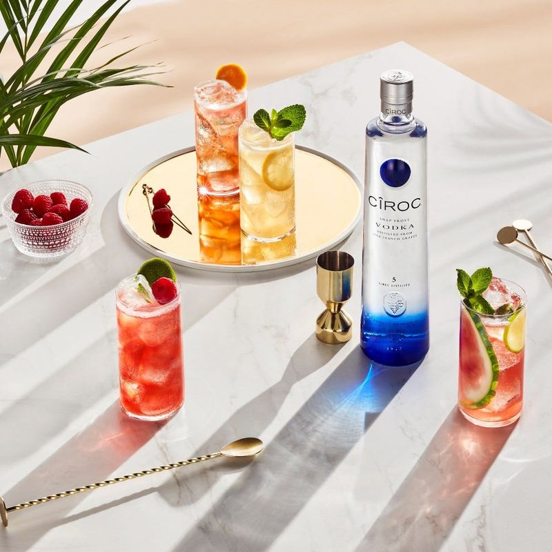 Established in 2003 in the South of France, CÎROC Premium Vodka is one of the only vodkas in the world made from fine French grapes, instead of using the typical grain. Its distillation process is inspired by over a century of wine-making expertise and craftsmanship which sets CÎROC apart from other vodkas and makes it a luscious, elegantly smooth and sophisticated luxury vodka. The brand's tall slender bottles are embossed with a cockerel perched on a cluster of grapes to symbolise the Gaillac region, and its grape growing heritage. The fresh, citrus taste and silky mouthfeel of CÎROC Premium Vodka make of it a fantastic base for delicious drinks.