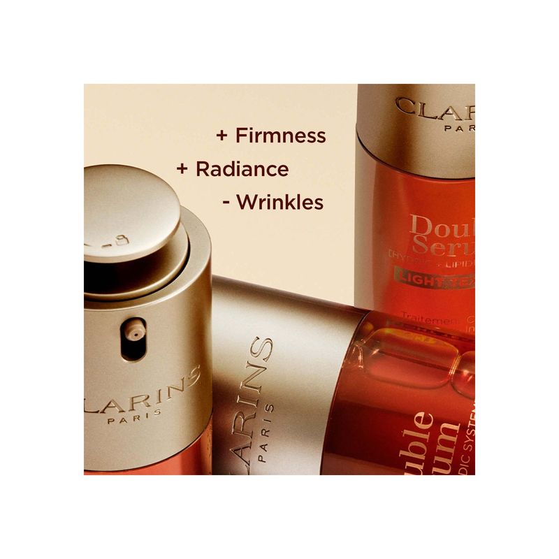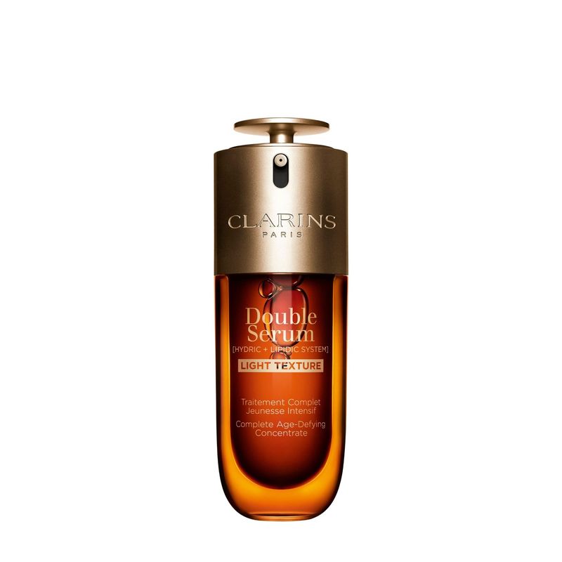 Inspirado en la ciencia de la epigenética, CLARINS reinventa Double Serum Light Texture con su fórmula dual de nueva generación, ideal para pieles mixtas a grasas. Más completa y ligera que nunca, la fase lipídica de Double Serum Light Texture incorpora la tecnología Lightweight Tri-oil, un trío de aceites 100% naturales seleccionados por su volatilidad. Su textura un 50% más ligera* hace que su aplicación sea excepcionalmente sensorial, deslizándose sobre la piel, absorbiéndose inmediatamente y sin dejar sensación grasa. ¿El resultado? Un acabado imperceptible y un efecto piel desnuda. Especialmente formulado para hidratar en profundidad dejando una sensación ligera, el Suero Doble Textura Ligera ofrece una acción antiedad. Está especialmente indicado para: - pieles mixtas a grasas - pieles jóvenes** - hombres - climas cálidos No comedogénico. Su nuevo envase contiene un 94%*** de materiales reciclables y ha sido rediseñado para ofrecer una experiencia totalmente personalizada. El sistema de dosificación mediante pulsador está diseñado para satisfacer todas las necesidades, a la vez que limita el consumo excesivo gracias a su sistema de bloqueo ON/OFF. *Prueba comparativa de análisis sensorial frente a Doble Suero, 12 expertos sensoriales. **Excluidos niños. ***Formato base de 50 ml.