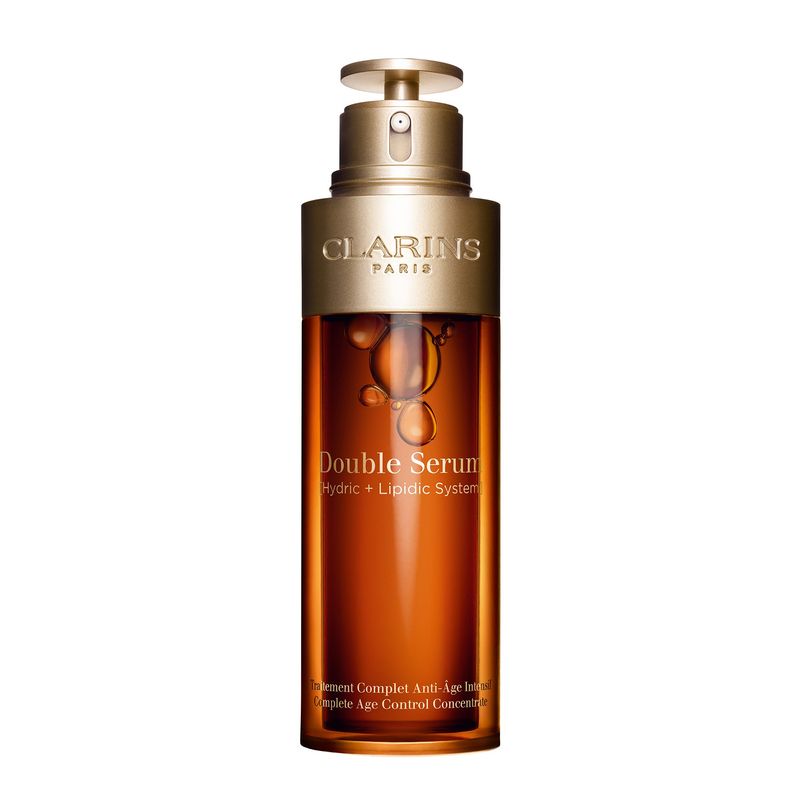 CLARINS Double Serum es un concentrado antiedad completo formulado para ayudar a actuar sobre las 5 funciones vitales de la piel para conseguir un cutis más joven y radiante. Ahora contiene 21 extractos activos de plantas, incluido el nuevo ingrediente estrella, la cúrcuma, distinguida por sus excepcionales propiedades antienvejecimiento. El nuevo Suero Doble actúa sobre los principales signos del envejecimiento cutáneo, la piel está más radiante, más firme y las líneas de expresión se alisan. El nuevo e innovador frasco dosifica el sérum a medida gracias a su pulsador giratorio.