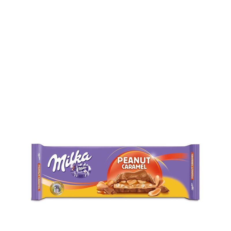 Una combinación suavemente indulgente de tierno chocolate con leche alpino, elaborado con leche 100% alpina y relleno de cremoso caramelo, cacahuetes tostados picados y chips de arroz.