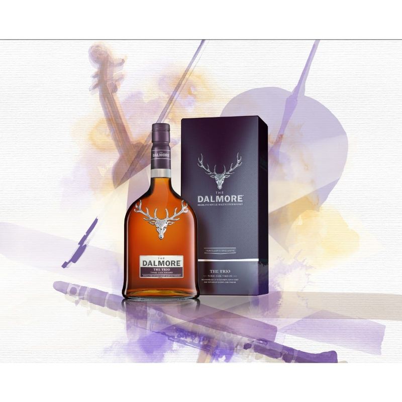 un single malt excepcional madurado en tres barricas igualmente excepcionales, The Trio rebosa de ciruelas maduras y bayas, una explosión de fruta equilibrada por un toque persistente de especias dulces.Utilizando una maduración en tres barricas, The Dalmore Trio es una cautivadora unión de barricas raras y excepcionales. El líquido se madura inicialmente en barricas de roble blanco americano ex-bourbon. Esto le confiere una primera base de suaves notas de vainilla y miel. El whisky se reparte entre barricas ex-bourbon de primer llenado, tubos de oporto Tawny de 10 años y barricas de jerez Matusalem de 30 años. Rebosante de ciruelas maduras y bayas con toques de especias dulces, The Dalmore Trio es un comienzo perfecto para el descubrimiento del Single Malt.Un Single Malt cautivador: pleno, rico, con gran encanto. Excepcionalmente regalable desde 1839.